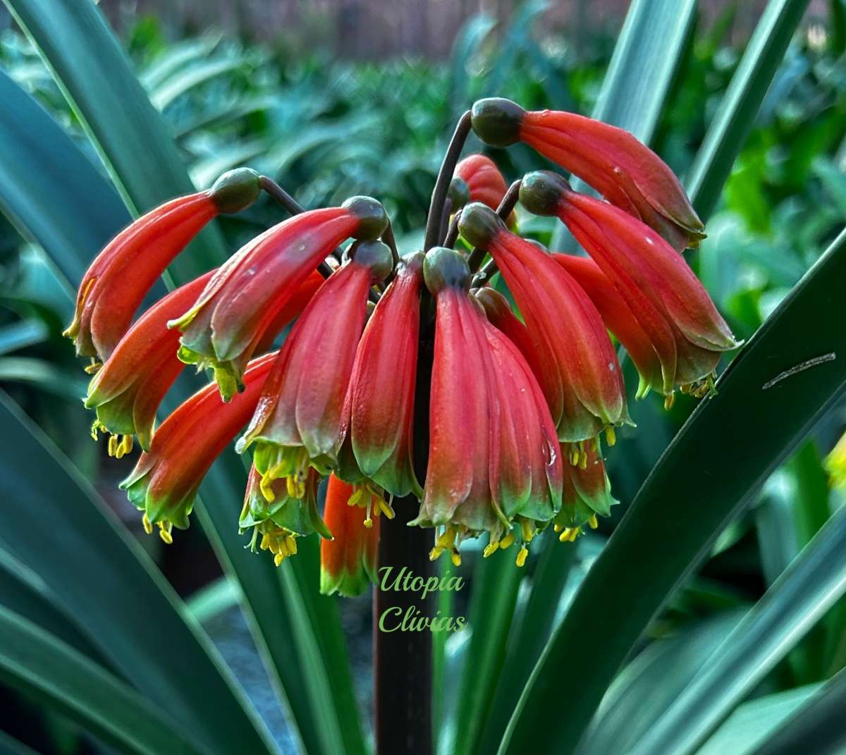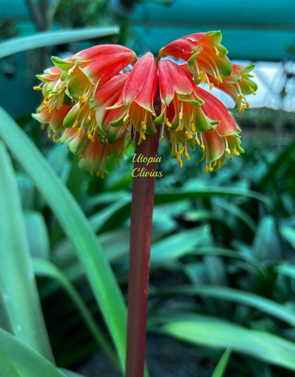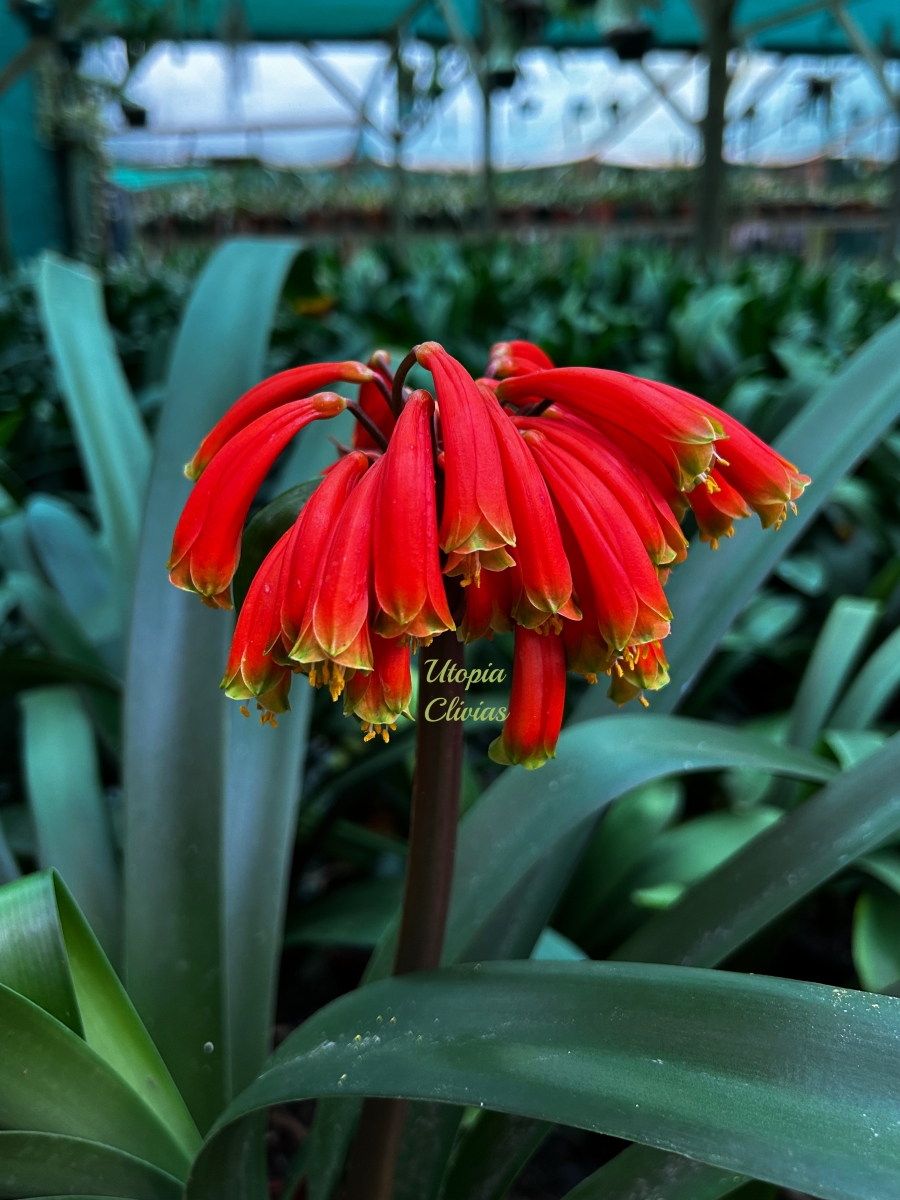 At Utopia Clivias, Clivia robusta is valued for its impressive stature, pendulous flowers, and breeding potential, particularly in the development of large-growing hybrids suited to moist, shaded garden conditions.