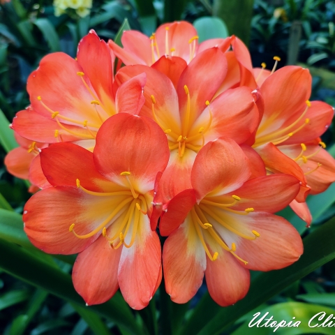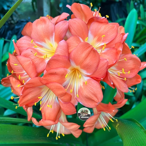 Chiba Giant Clivias — large-flowered hybrids, frequently orange or peach, selected for exceptional size and showy blooms.