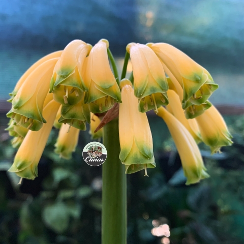 Yellow Caulescens — extremely rare Clivia species featuring pendulous yellow flowers, elongated stems, and exceptional genetics for breeding.